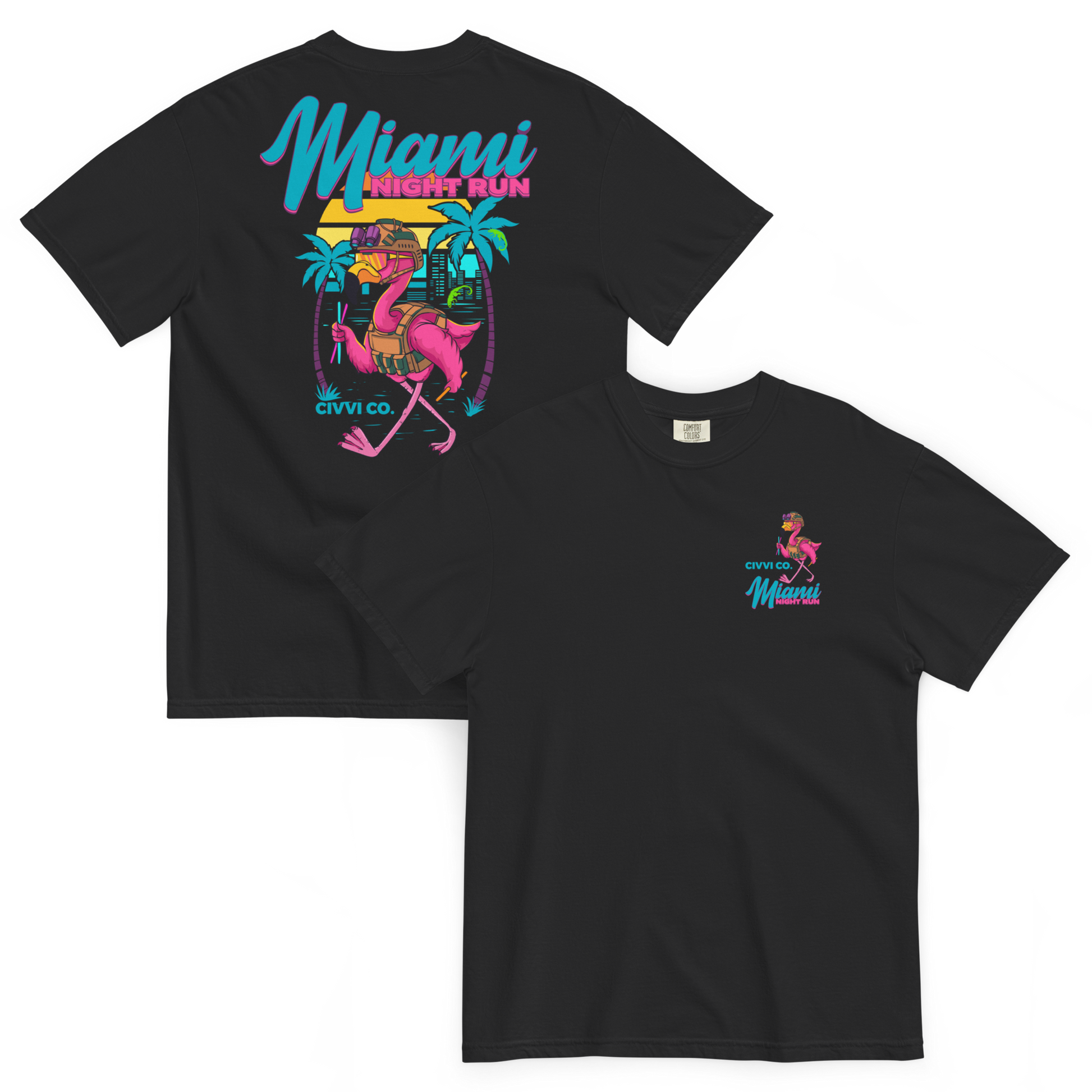 The Miami Night Run tee blends tactical durability with coastal cool. Hand-pressed in Florida by veterans who know what it means to move with purpose, this premium performance shirt is built for those who don't slow down when the sun goes down.